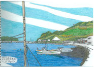 私のスケッチは登山はせず地元の人が毎日見ている海沿い・川筋から独自のアングルを探します。